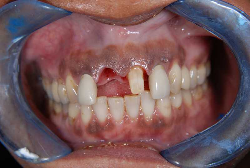 Pic 4 Provisional bridge splinting newly placed immediate implant and simultaneous bone grafting with adjacent central incisor